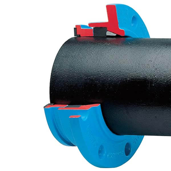 Для соединений труб с фланцевой арматурой используется «муфта-фланец», также называются фланцами фиксирующими и фланцами двухкамерными. С их помощью есть возможность без особых усилий и трудозатрат, а также без сварки, присоединить различные типы труб к фланцевой трубопроводной арматуре (задвижкам, фильтрам, обратным клапанам, фасонным частям и т.д.).